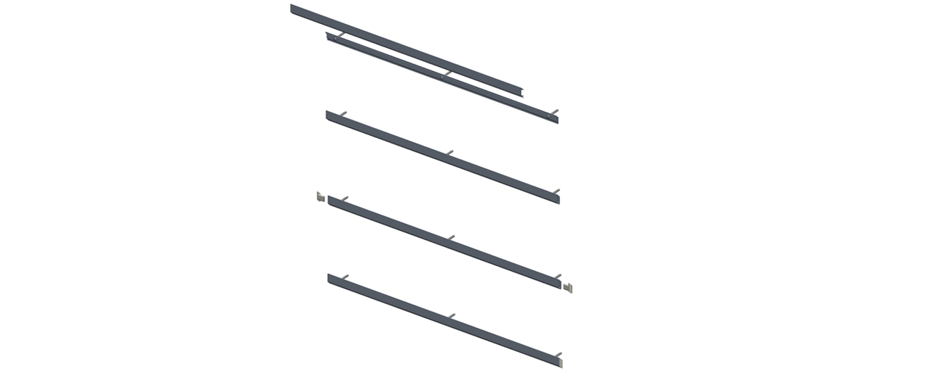 Plaats de haak van de opbergbeugel langs boven rond het basisprofiel en duw tot het in elkaar 'klikt'.