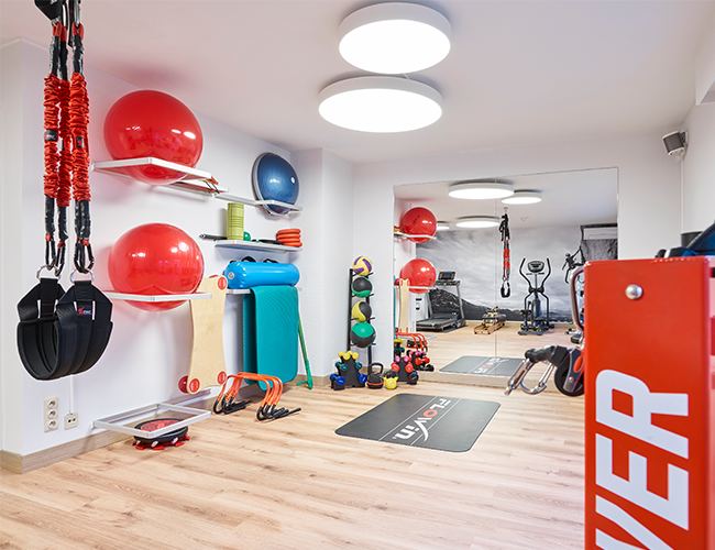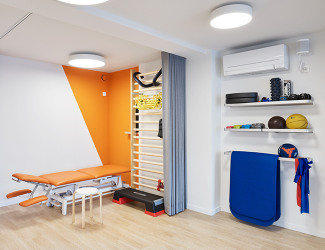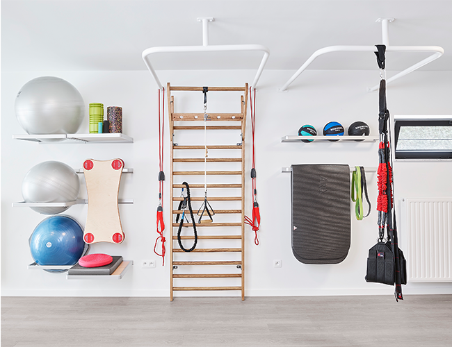 Het opbergsysteem is mooi geïntegreerd in uw praktijk en geeft de patiënt meer ruimte om oefeningen te doen.