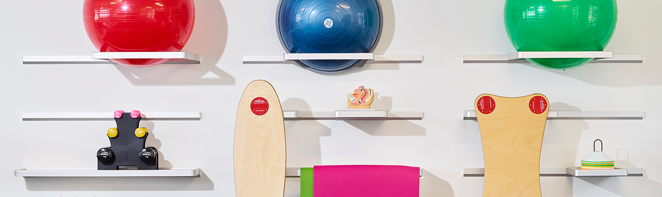 Qlick is een uniek modulair opbergsysteem voor het opbergen van klein en groot oefenmateriaal in kinesitherapiepraktijken en oefenzalen.